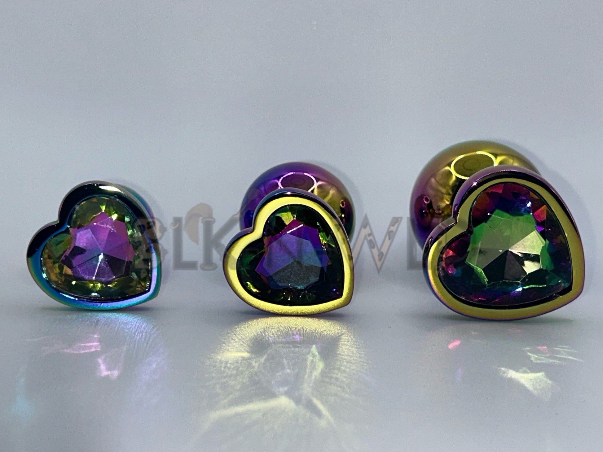 Heart-shaped Rainbow iridescent plugs with color changing jewels