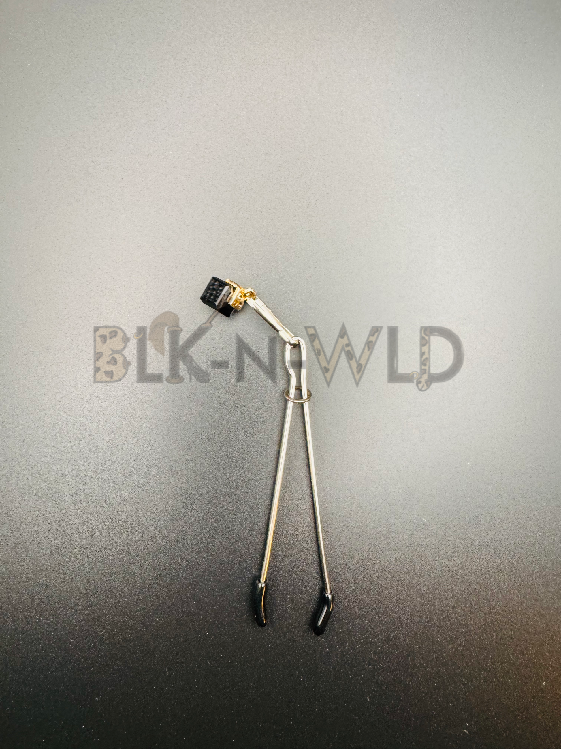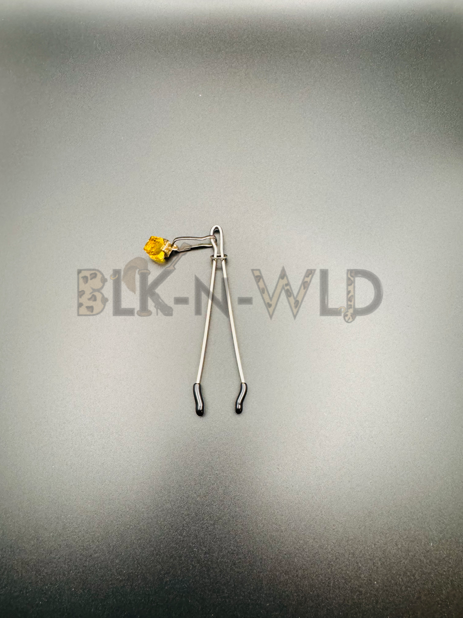 Rubber-tipped, adjustable clit tweezer with attached gemstone, or charm