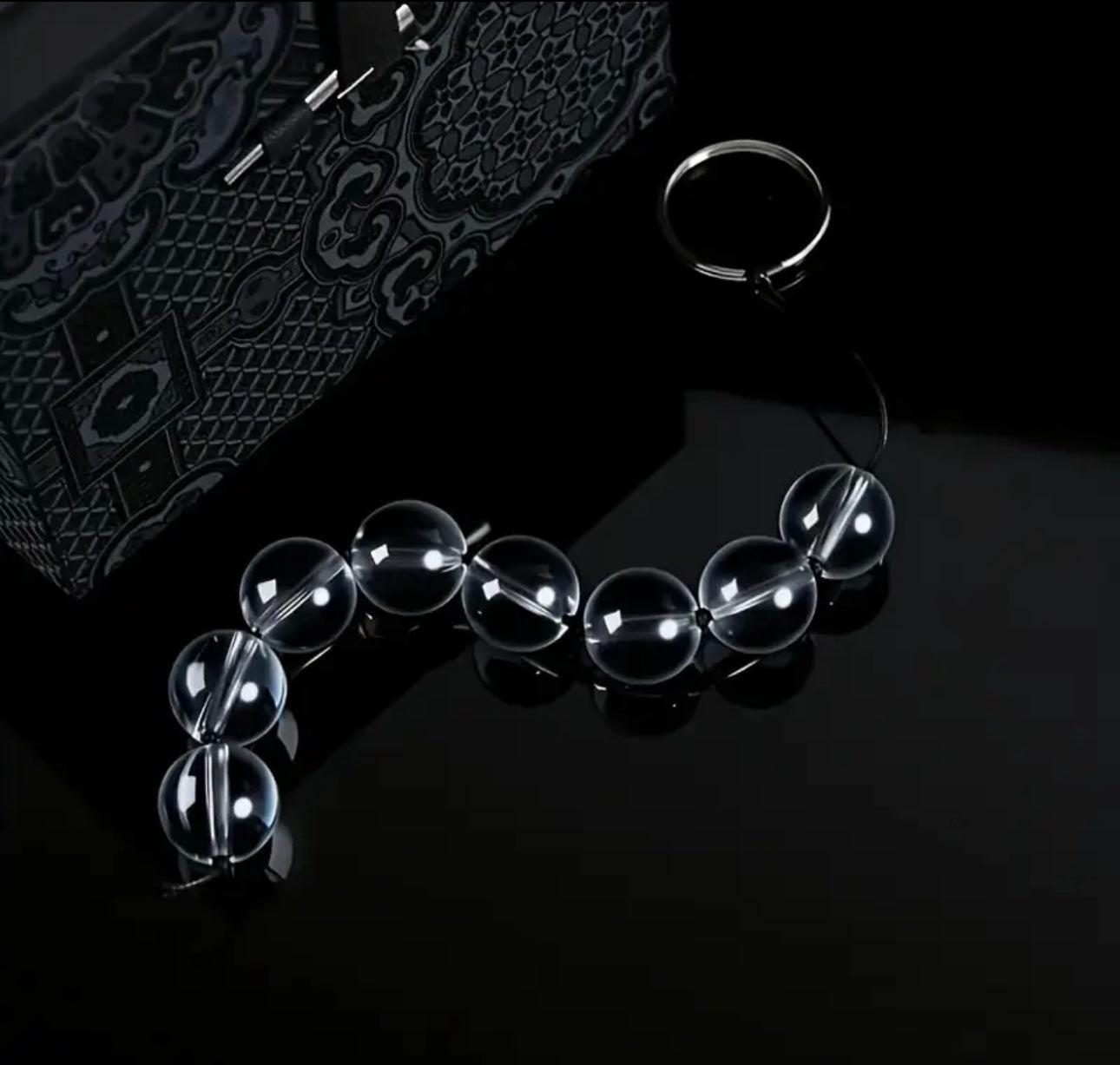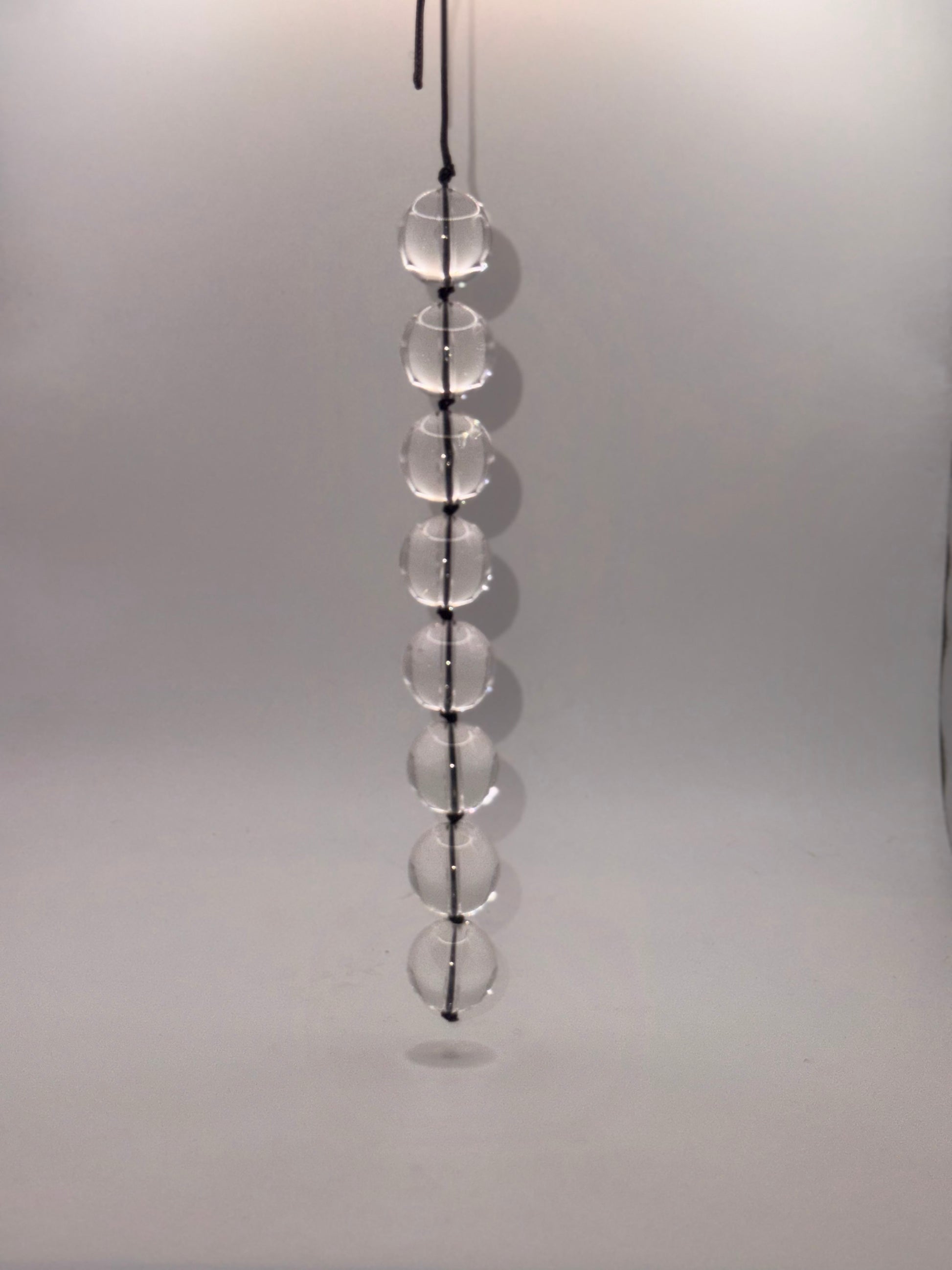 8 total .75" beads on a string with a ring attached. Almost 7" in usable