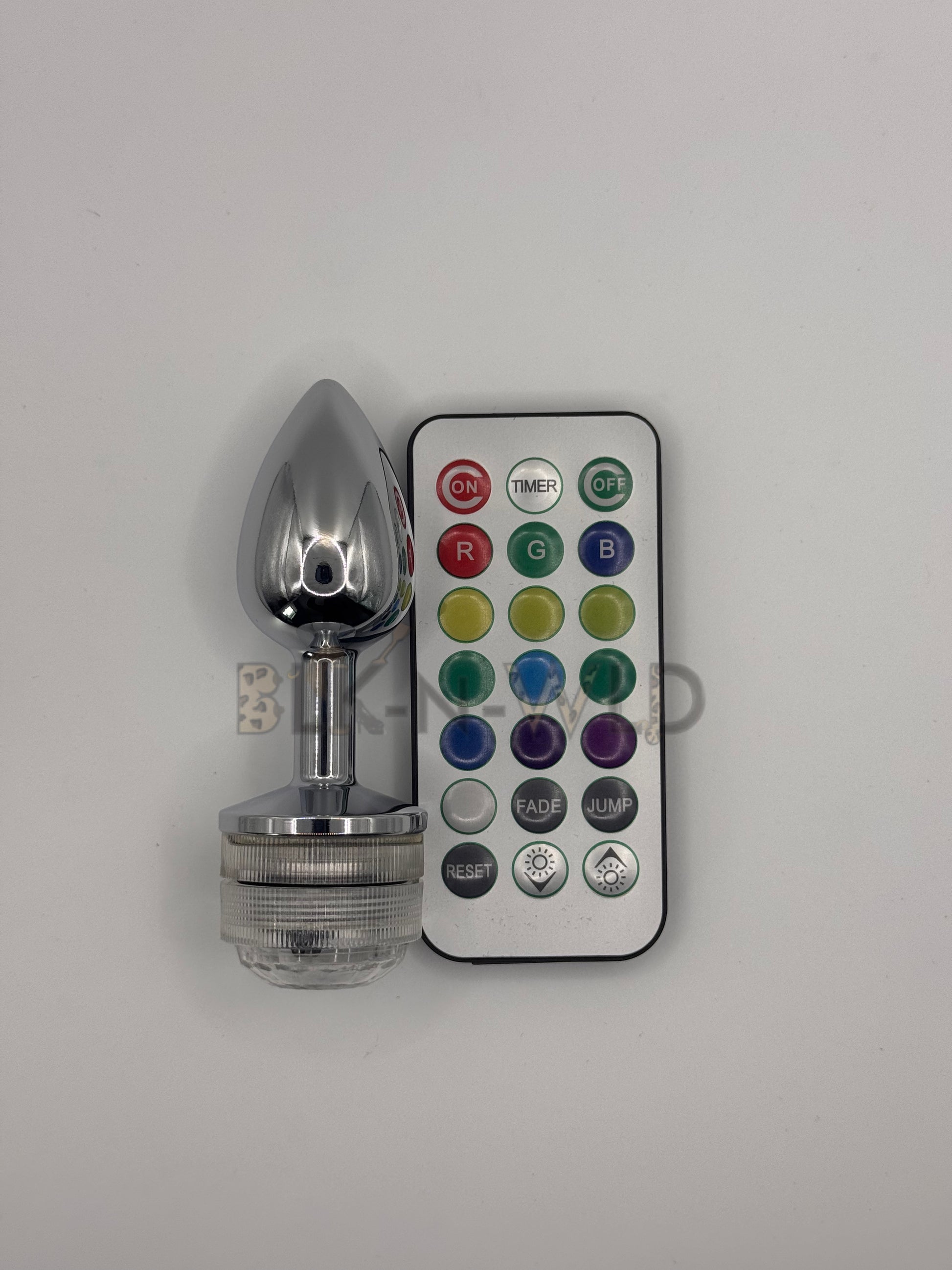 Light up the night with this small but illumines metal plug. Equipped with a remote to change the light settings.
