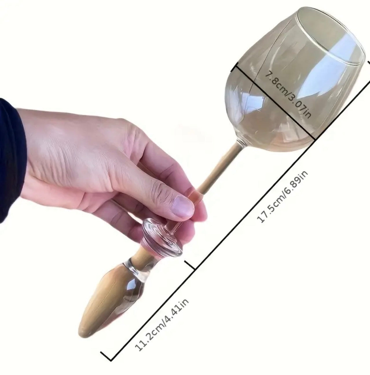 Smooth Pyrex glass butt plug attached to a long stem wine glass